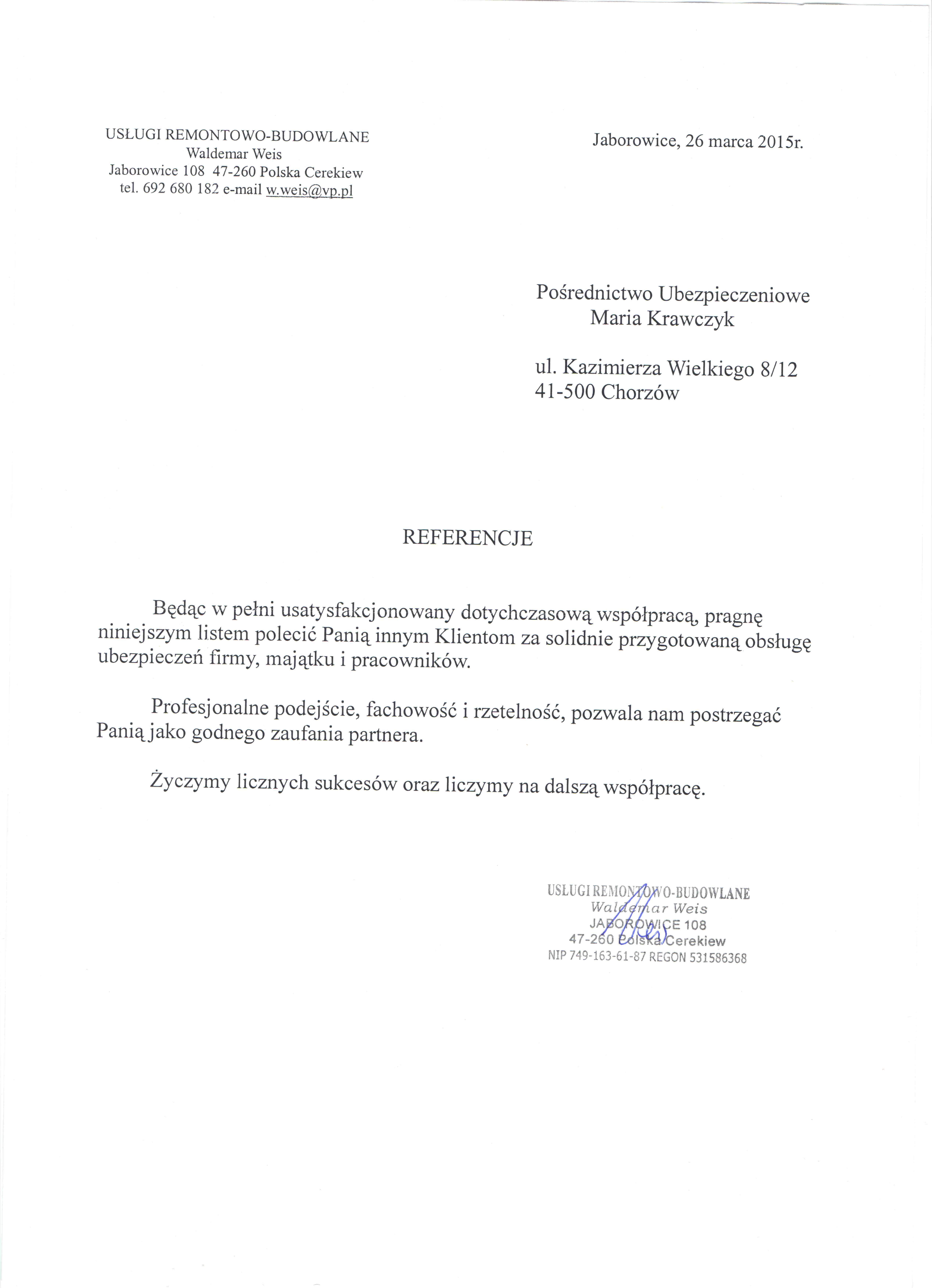Referencje Pobierz Referencje Stowarzyszenia Trekking Club Usługi remontowo-budowlane Waldemar Weis Zapraszam do kontaktu